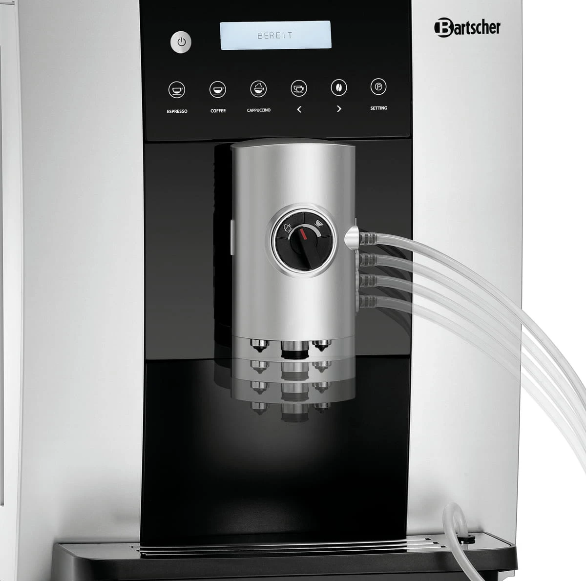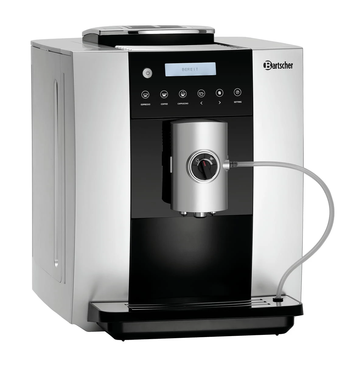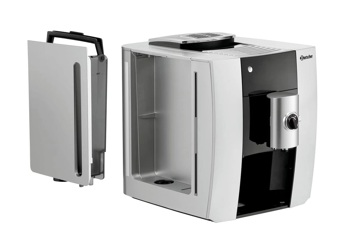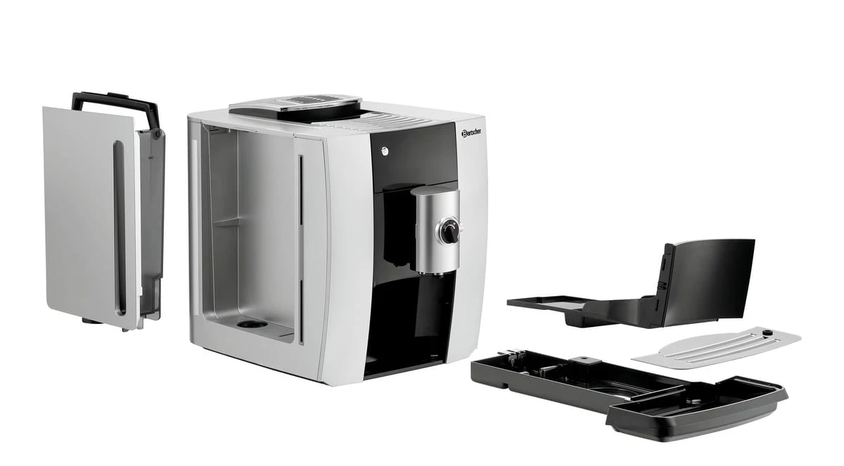 Ekspres Bartscher Easy Black 250 wyróżnia się szeregiem przydatnych funkcji, takich jak: sygnał informujący o konieczności odkamieniania, wskaźnik poziomu napełnienia, funkcja automatycznego wyłączania czy regulowany wylot spieniania mleka w zakresie 80-115 mm. Ponadto, urządzenie jest wyposażone w wyjmowany zbiornik na wodę o pojemności 1,8 l oraz pojemnik na resztki, który można myć w zmywarce.