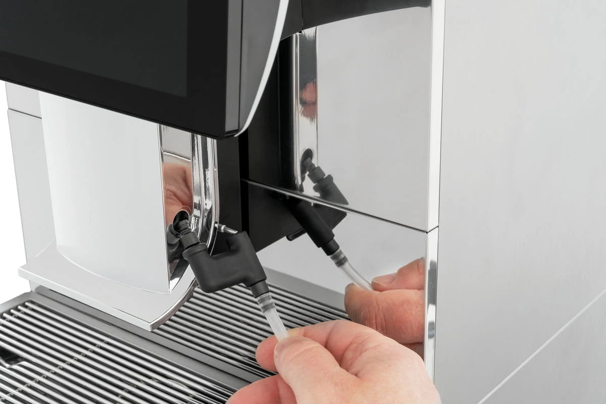 Obudowa KV1 Deluxe łączy eleganckie, srebrne wykończenia z czarnymi detalami, co sprawia, że ekspres pasuje zarówno do nowoczesnych, jak i klasycznych wnętrz. Dodatkowe funkcje, takie jak licznik filiżanek (na program i łącznie), pamięć cykli czyszczenia oraz możliwość ustawienia temperatury mleka, sprawiają, że jest to urządzenie niezwykle wszechstronne i łatwe w konserwacji.