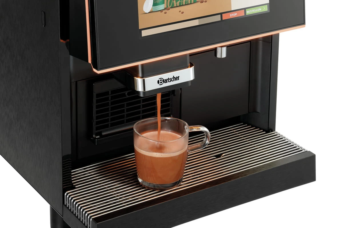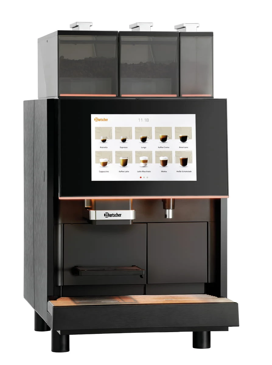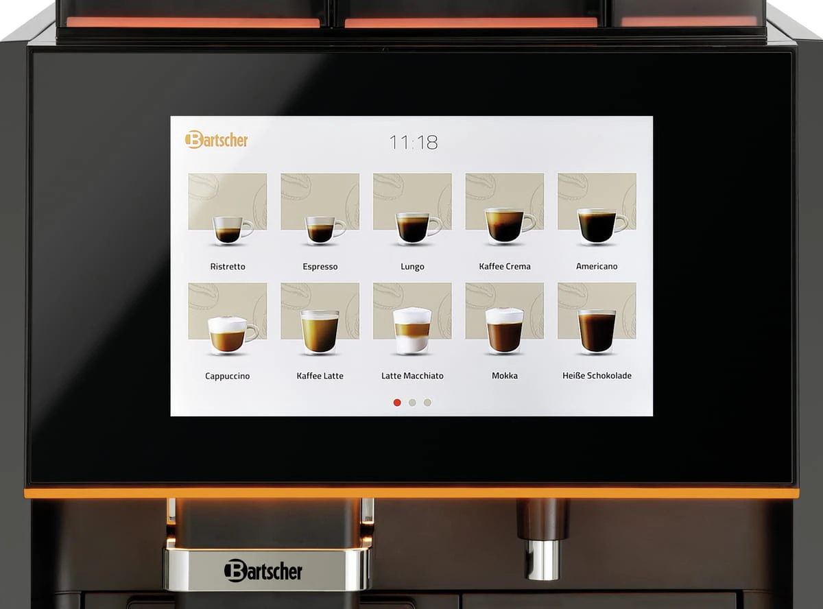 Nowoczesna technologia i intuicyjna obsługa Bartscher KV2 Premium to zaawansowane, w pełni automatyczne urządzenie, które świetnie sprawdzi się w kawiarniach, biurach, hotelach czy punktach gastronomicznych. Duży, 10,1-calowy dotykowy ekran LCD umożliwia łatwą i intuicyjną obsługę, a także programowanie aż 30 własnych receptur napojów. Dodatkowo, ekspres daje możliwość wyświetlania indywidualnych nagrań reklamowych podczas pracy lub w przerwach.