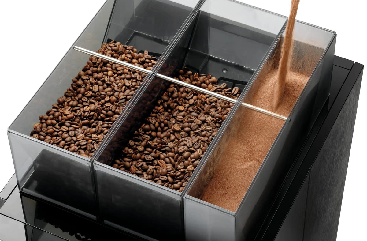 Oprócz szerokiego wyboru kaw, ekspres Bartscher KV2 Premium pozwala również na przygotowanie gorącej czekolady czy herbaty. Wykorzystuje on dwa niezależne pojemniki na ziarna kawy (po 1,2 kg każdy) oraz pojemnik na napoje instant (1,6 kg) - na przykład na sproszkowane mleko lub kakao. Umożliwia także płynną regulację stopnia zmielenia kawy.